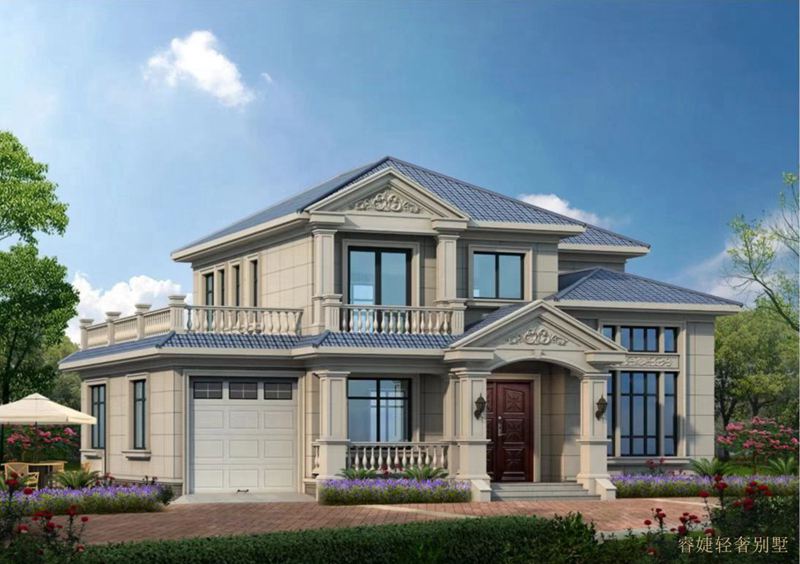 帶車庫和露臺的二層簡歐鄉(xiāng)村別墅